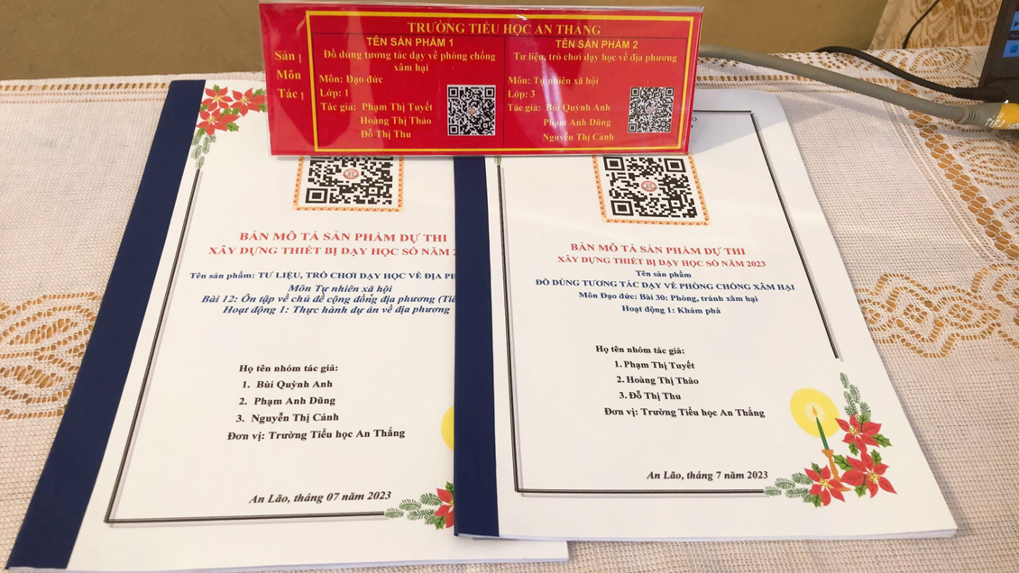 Trường Tiểu học An Thắng tham gia dự thi 2 sản phẩm. Các tác giả đều thể hiện được sự đầu tư và tâm huyết thông qua những sản phẩm có tính khoa học, tính sư phạm, thẩm mĩ, tính sáng tạo phù hợp với tâm sinh lí của lứa tuổi học sinh. Kết quả :Ban Giám khảo trao giải khuyến khích cho sản phẩm : Đồ dùng tương tác dạy học bài “ Phòng chống xâm hại” môn Đạo đức lớp 1 do nhóm tác giả : Đỗ Thị Thu; Phạm Thị Tuyết; Hoàng Thị Thảo xây dựng.