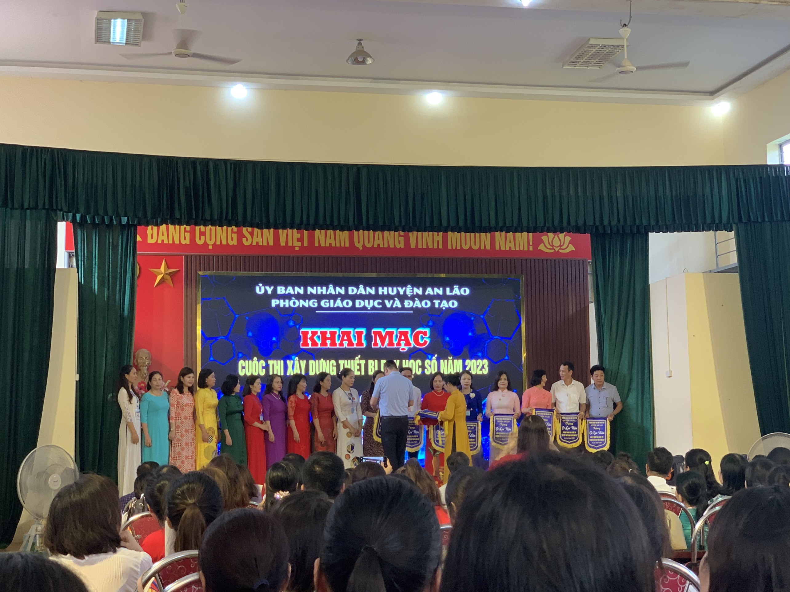 Thực hiện Kế hoạch số 226/KH-PGDĐT ngày 05/7/2023 và Thông báo số 240/TB-PGDĐT ngày 20/7/2023 Phòng Giáo dục và Đào tạo., với mục đích khơi dậy ý thức chủ động, sáng tạo xây dựng thiết bị dạy học số nhằm nâng cao chất lượng dạy và học; bổ sung nguồn tư liệu dạy học, thiết bị dạy học có chất lượng đồng thời hỗ trợ các tổ chuyên môn trong việc chuẩn bị thiết bị dạy học tối thiểu theo quy định của Bộ Giáo dục và Đào tạo; tăng cường ứng dụng công nghệ thông tin trong hoạt động dạy và học, góp phần thúc đẩy chuyển đổi số trong lĩnh vực giáo dục theo đúng mục tiêu của chương trình chuyển đổi số quốc gia, ngày 2 tháng 8 năm 2023, PGD huyện An Lão, đã long trọng tổ chức Hội thi “Xây dựng Thiết bị dạy học số” năm 2023.
