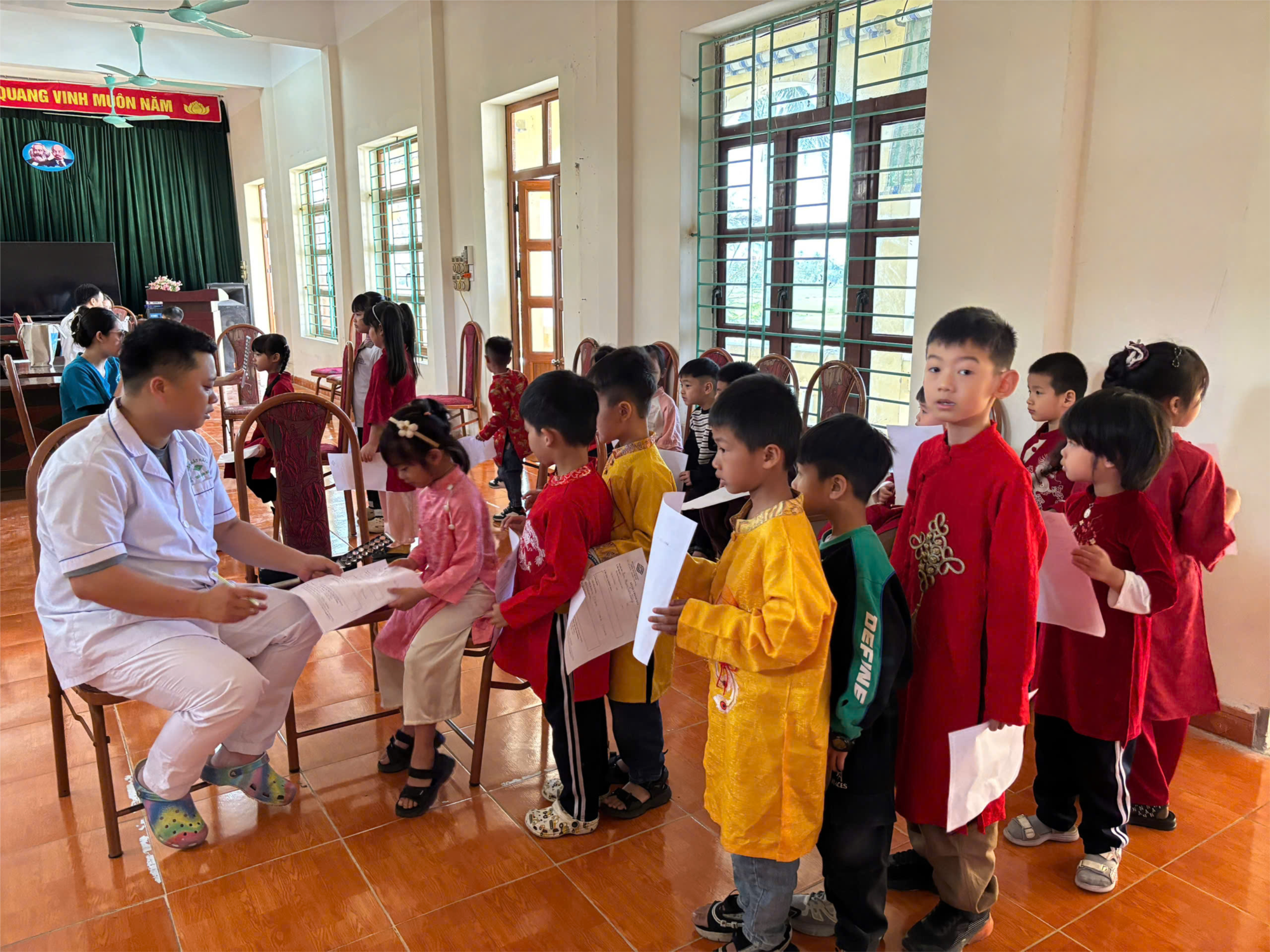 Trong buổi khám, các bạn học sinh lớp 1D đã được các bác sĩ thăm khám tận tình, kiểm tra thị lực và tư vấn cách chăm sóc, bảo vệ đôi mắt. Các em rất hào hứng, mạnh dạn hợp tác với bác sĩ trong quá trình kiểm tra.