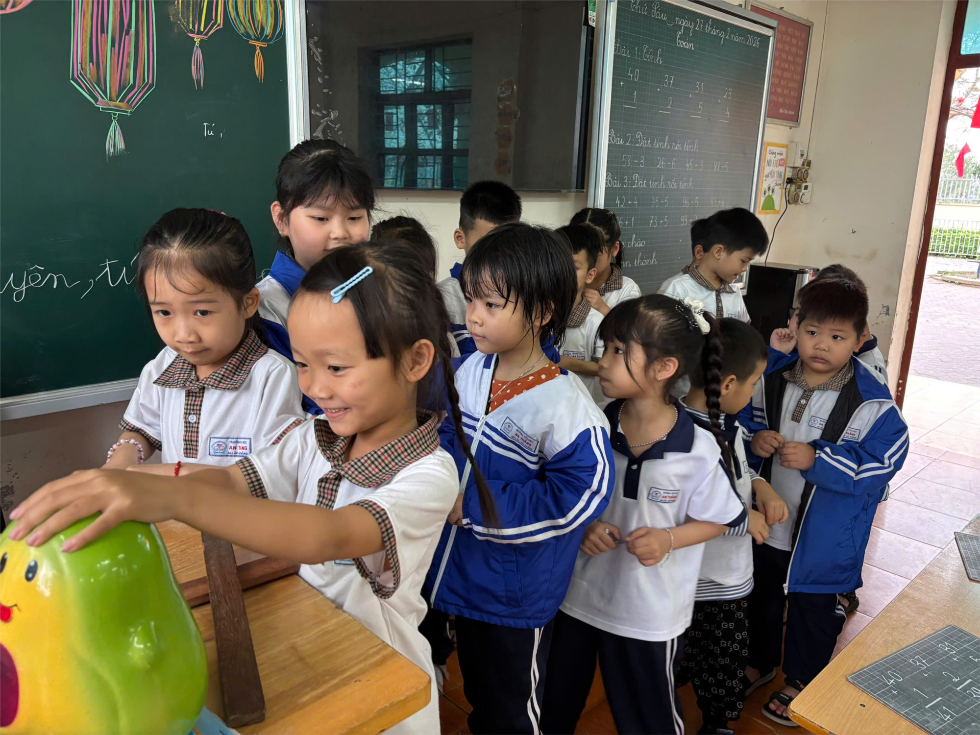 Sau những ngày Tết ấm áp, các bạn nhỏ lớp 1D trở lại trường với niềm vui rạng rỡ. Và việc đầu tiên các con làm trong năm mới chính là lì xì cho chú “bơ đất” nhỏ của lớp.