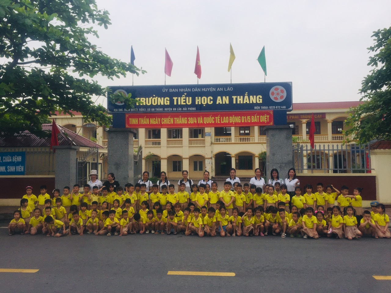 Sáng nay ngày 07 tháng 5 năm 2024 trong khí thế cả nước chào mừng 70 năm chiến thắng Điện Phủ, các thầy cô và học sinh trường Tiểu học An Thắng đã đón hơn 100 các em học sinh lớp Mẫu giáo 5 tuổi Trường Mầm Non An Thắng sang thăm trường.