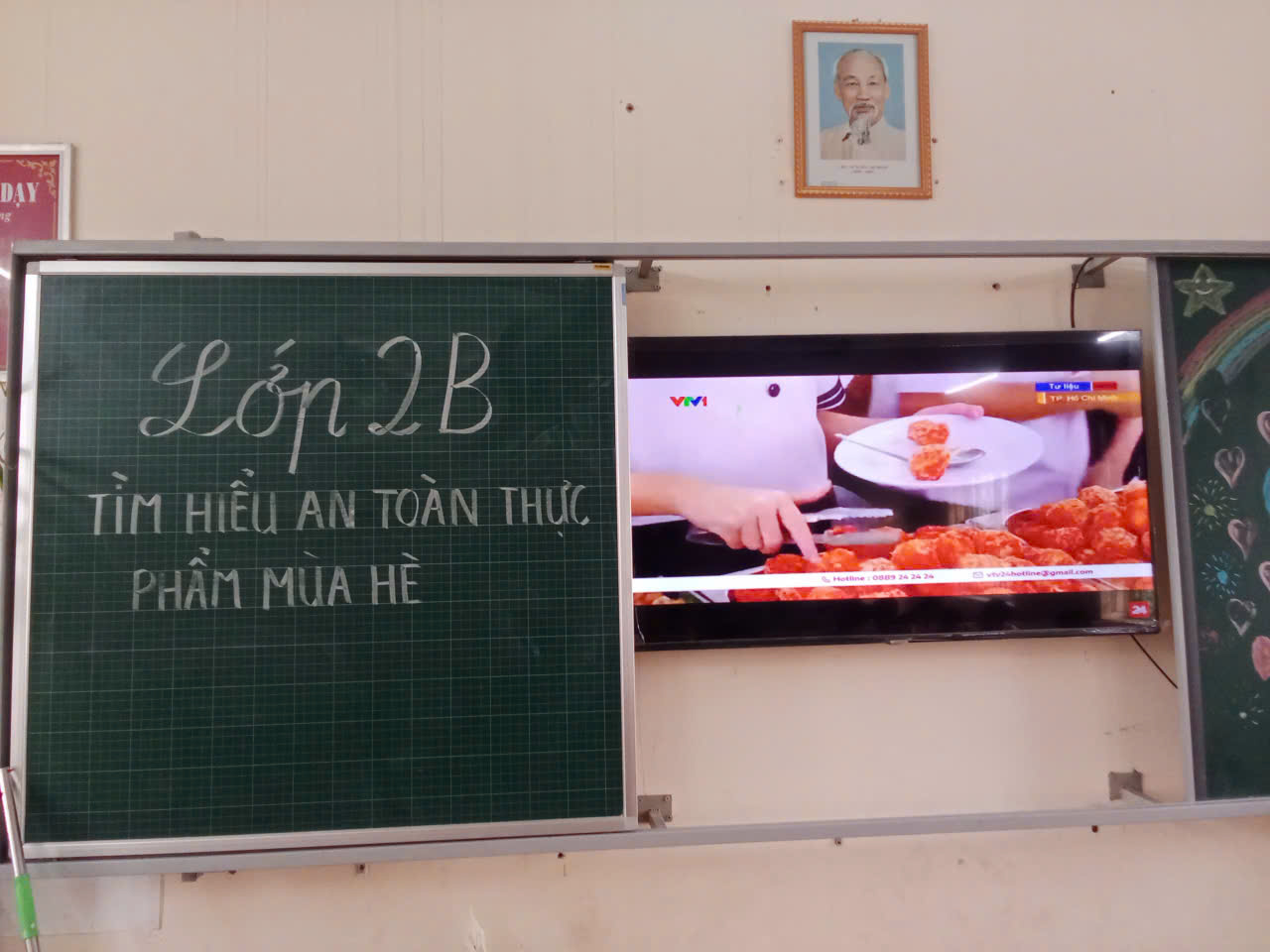 Dưới sự hướng dẫn của thầy giáo, các em học sinh lớp 2B biết mùa hè là thời điểm thời tiết nắng nóng, thức ăn rất dễ bị ôi thiu, vi khuẩn phát triển nhanh. Nếu chúng ta không chú ý giữ gìn vệ sinh ăn uống, rất dễ mắc các bệnh về đường tiêu hóa. Vì vậy, việc tìm hiểu và thực hiện an toàn thực phẩm là vô cùng cần thiết.