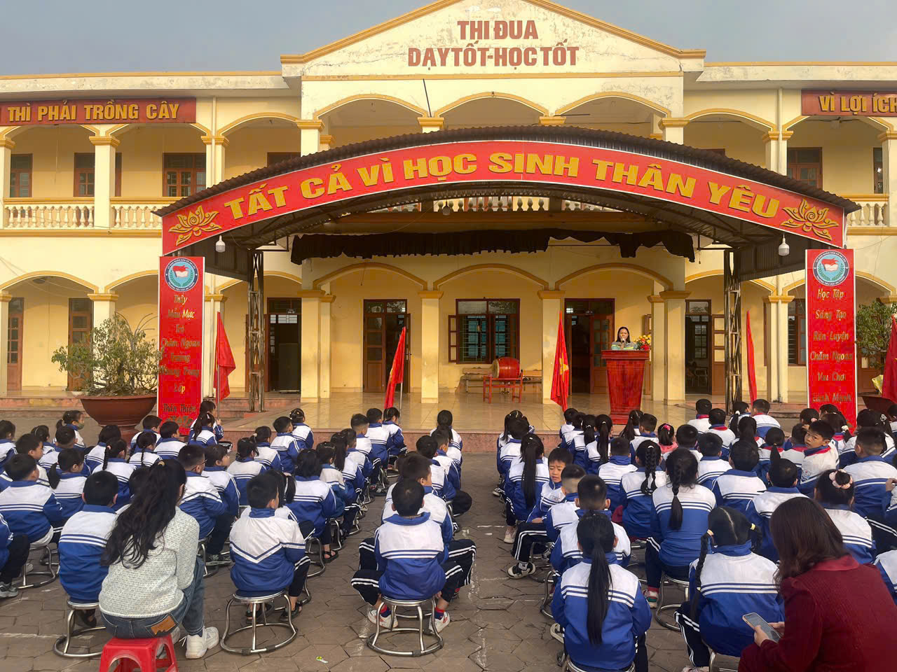 Dưới lá cờ Tổ quốc tung bay trong gió sớm, các con đứng ngay ngắn, hát vang Quốc ca bằng tất cả sự hồn nhiên và lòng kính yêu đất nước. Những ánh mắt trong veo, những giọng hát tuy còn non nớt nhưng chứa đựng tinh thần nghiêm túc, ý thức kỷ luật và niềm tự hào của những “công dân nhỏ” đang từng ngày trưởng thành.