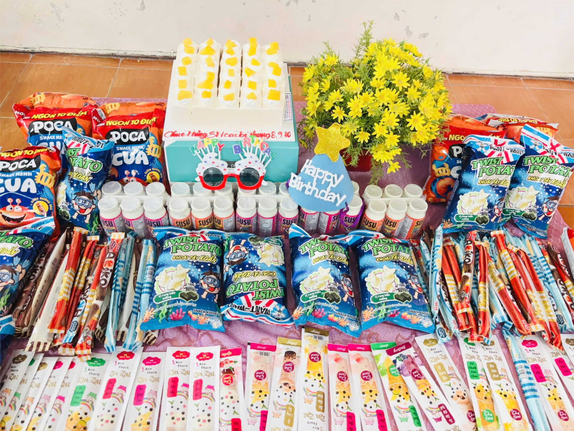 Buổi sinh nhật diễn ra trong không khí vui tươi và đầm ấm. Cả lớp cùng nhau hát vang bài hát “Chúc mừng sinh nhật”, thổi nến, cắt bánh và tham gia những trò chơi thú vị. Gương mặt ai nấy đều rạng rỡ, tiếng cười giòn tan vang lên khiến lớp học trở nên thật sôi động và đầy ắp niềm vui.