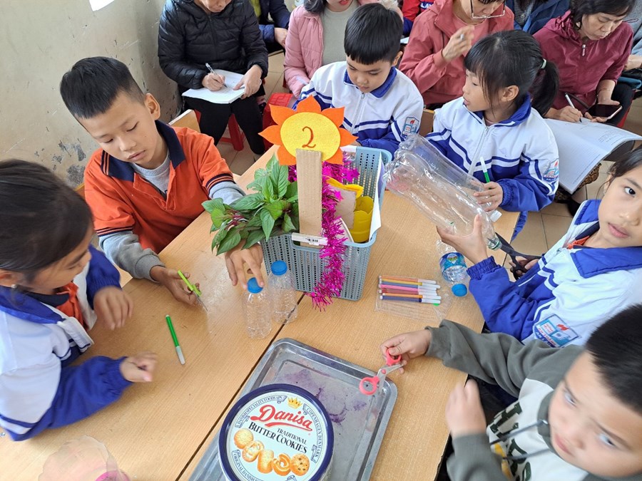 Sau tiết học các em đã có những cảm nhận về bài học STEM: yêu thích môn học hơn, nhận ra lợi ích của việc sử dụng phế liệu để tái sử dụng, yêu thích thiết kế sáng tạo và nghiên cứu khoa học.