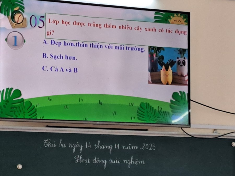 🍒🍒Thực hiện Kế hoạch chuyên môn của trường Tiểu học An Thắng năm học 2023 – 2024. Chiều ngày 8/11/2023 trường Tiểu học An Thắng đã tổ chức chuyên đề chuyên môn cấp trường:”Dạy học giáo dục STEM môn Hoạt Động Trải Nghiệm lớp 3 theo chương trình GDPT 2018 – Bài : Lớp học xanh ( gồm 2 tiết) do 2 cô giáo : Nguyễn Thuý Hà - Tổ trưởng tổ 2+3 thực hiện tiết 1 tại lớp 3C, cô Nguyễn Thị Thu Hoài - Gv tổ 2+3 thực hiện tiết 2 tại lớp 3A