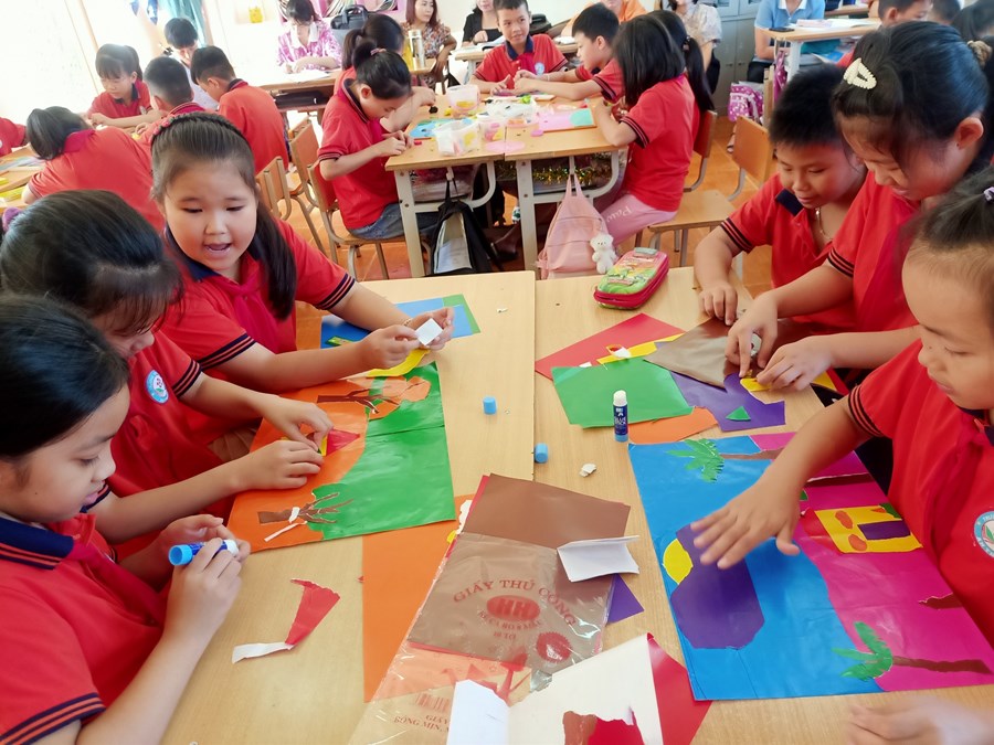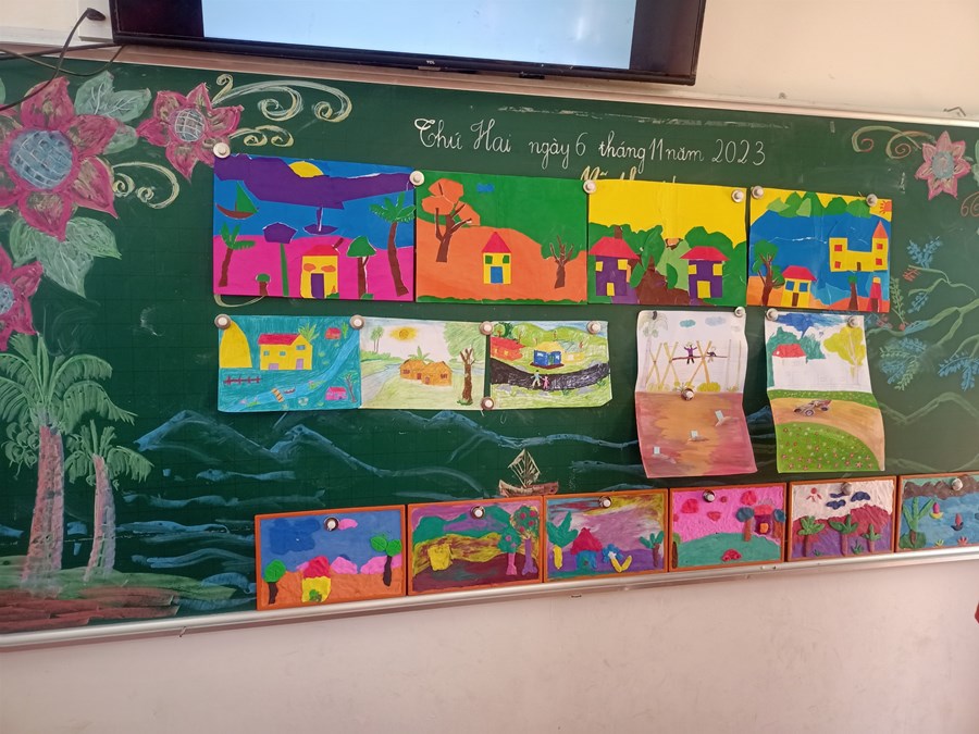 🌷Qua tiết dạy cô đã linh hoạt sử dụng các phương pháp và kĩ thật dạy học nhằm phát huy tính tích cực, chủ động, sáng tạo và vận dụng kiến thức, kĩ năng của học sinh, góp phần phát triển toàn diện NL và PC của HS. Học sinh lớp 4 đã được tham gia trải nghiệm sử dụng các chất liệu và các cách khác nhau để tạo sản phẩm mĩ thuật với chủ đề: Cảnh đẹp quê hương .