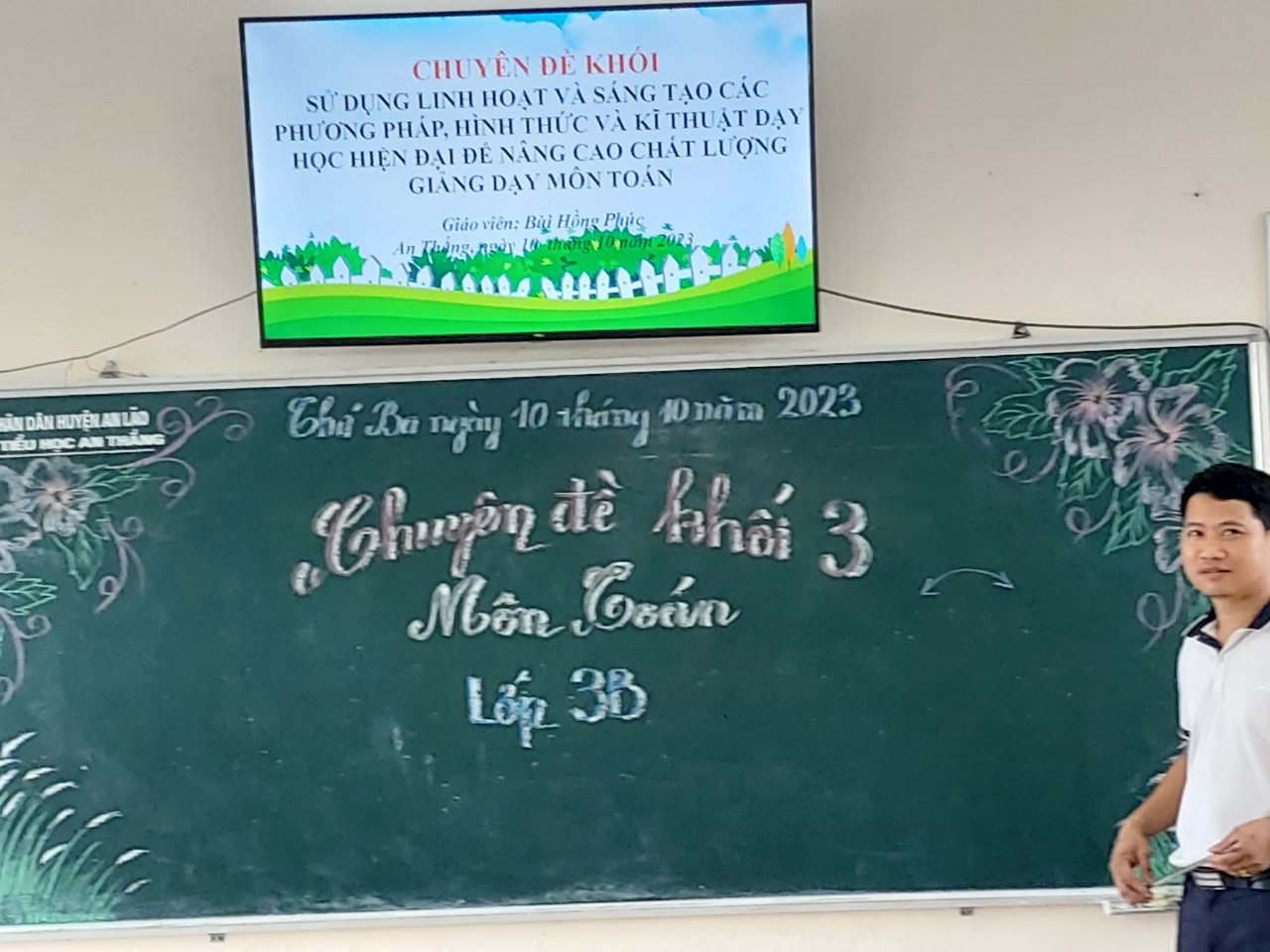 Thực hiện sự chỉ đạo của bộ phận chuyên môn và kế hoạch chuyên môn của tổ 2 +3 năm học 2023-2024. Hôm nay khối 3 trường Tiểu học An Thắng tổ chức chuyên đề: "Sử dụng linh hoạt và sáng tạo các phương pháp ,hình thức và kĩ thuật dạy học hiện đại để nâng cao chất lượng giảng dạy môn Toán. 🌷Nhằm phát huy tính tích cực, chủ động, sáng tạo và vận dụng kiến thức, kĩ năng của học sinh, góp phần phát triển toàn diện NL và PC của HS tiểu học. Định hướng dạy học toán ở tiểu học cần vận dụng một cách đa dạng các hình thức tổ chức với các phương pháp dạy học; chú trọng thực hành, ứng dụng, Với tinh thần học tập và phát huy năng lực của học sinh, khối 3 đã xây dựng tiết Toán . Bài " Một phần mấy" do thầy giáo Bùi Hồng Phúc lên lớp thể hiện .Trong tiết học thầy giáo đã tổ chức hoạt động dạy học linh hoạt (cá nhân, cặp, nhóm, cả lớp, …) với sự hướng dẫn, phù hợp từng đối tượng HS. Đồng thời thầy Phúc đã sử dụng kết hợp các phương pháp dạy học mới giúp các em tự lĩnh hội được kiến thức toán học với việc hình thành, phát triển NL, PC của HS. GV chuyển quá trình thuyết giảng thành quá trình tổ chức hoạt động học cho HS : Gợi động cơ, tạo hứng thú; Trải nghiệm, khám phá; Phân tích, rút ra bài học; Thực hành; Ứng dụng. Đổi mới PP dạy học toán bắt đầu từ: Đổi mới lập kế hoạch bài dạy Toán giáo viên lập kế hoạch bài dạy với tinh thần “dạy học là tổ chức cho học sinh hoạt động để tự tiếp thu kiến thức và phát triển kiến thức, rèn luyện kĩ năng ...