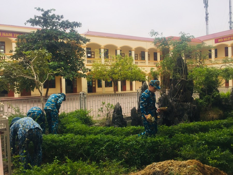 ❤️❤️Trường Tiểu học An Thắng và Tiểu đoàn tên lửa 75 đã có nhiều năm gắn kết.Lãnh đạo và các chiến sĩ Tiểu đoàn 75 luôn sát cánh, giúp đỡ, hỗ trợ nhà trường trong mọi hoạt động. Nhân kỷ niệm 41 năm ngày nhà giáo Việt Nam 20/11, để giúp quang cảnh nhà trường thêm khang trang, sạch đẹp, các chiến sĩ Tiểu đoàn 75 đã giúp nhà trường cải tạo, cắt tỉa vườn cảnh một cách tỉ mỉ, đẹp mắt.