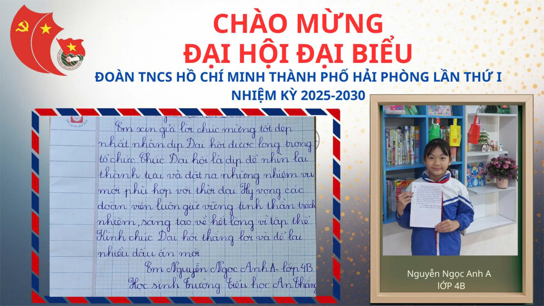 🌺 Hưởng ứng phong trào chào mừng Đại hội Đoàn, học sinh lớp 4B trường Tiểu học An Thắng đã tích cực tham gia hoạt động viết thư chúc mừng.
