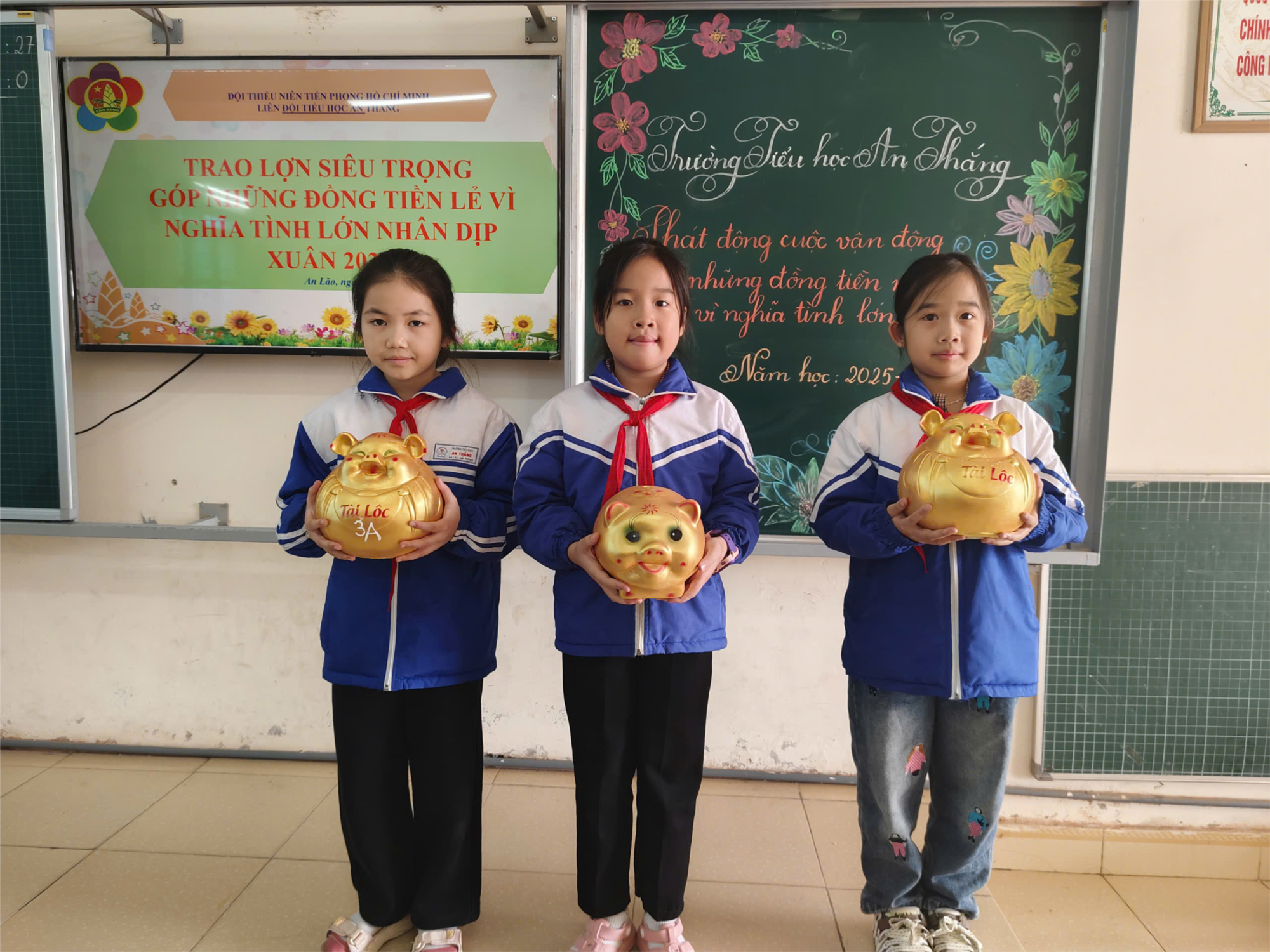 Nhằm phát huy tinh thần “Lá lành đùm lá rách”, giáo dục cho học sinh lòng nhân ái, biết yêu thương, chia sẻ với bạn bè có hoàn cảnh khó khăn, trong giờ sinh hoạt dưới cờ Liên đội Trường Tiểu học An Thắng phát động phong trào “Nuôi lợn siêu trọng giúp bạn đến trường” năm học 2025 – 2026 tới toàn thể các em học sinh. Phong trào “Nuôi lợn siêu trọng- giúp bạn đến trường” là một hoạt động đầy ý nghĩa, thể hiện tấm lòng nhân ái và tinh thần đoàn kết của các bạn đội viên, nhi đồng trong toàn trường.