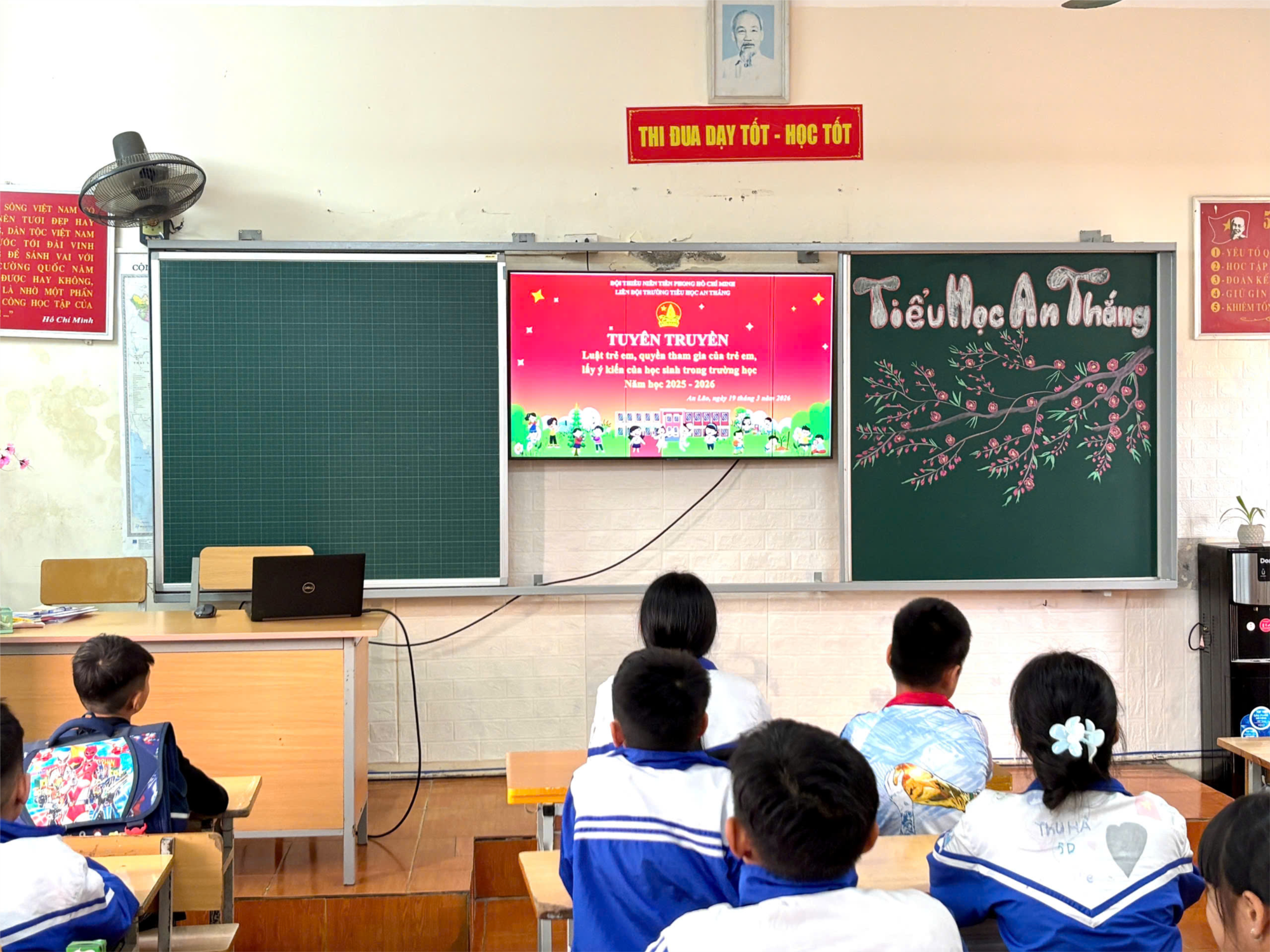 Thực hiện kế hoạch năm học 2025 – 2026 và nhằm nâng cao nhận thức cho học sinh về quyền và bổn phận của mình, lớp 5D – Trường Tiểu học An Thắng đã tổ chức hoạt động tuyên truyền Luật Trẻ em, đặc biệt nhấn mạnh đến quyền tham gia của trẻ em trong trường học.