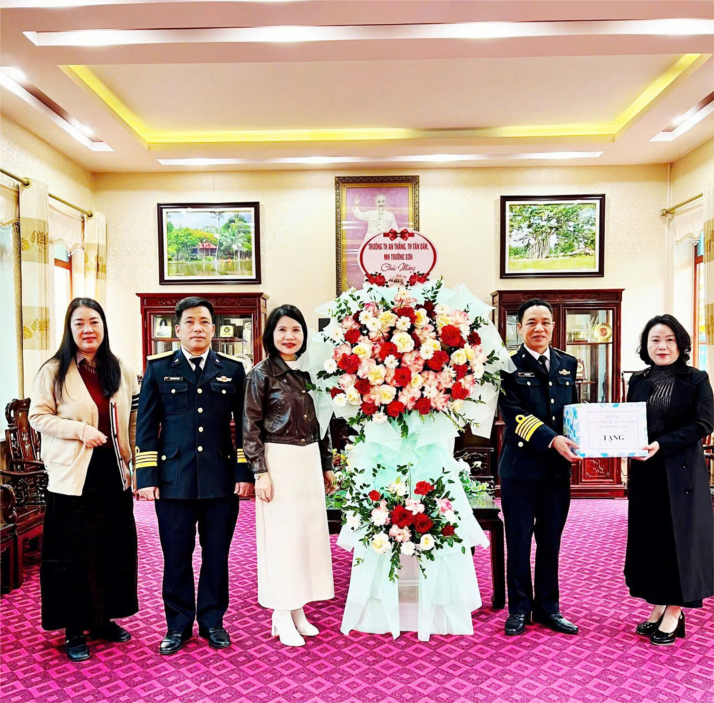 🌸 Nhân dịp này, đại diện Ban Giám hiệu nhà trường đã tặng hoa chúc mừng đơn vị 💐, thể hiện tình cảm trân trọng và lòng biết ơn sâu sắc đối với các cán bộ, chiến sĩ đang ngày đêm vững vàng nơi đầu sóng ngọn gió.