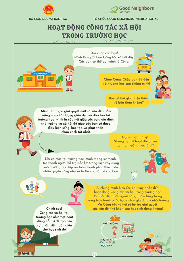 Cùng với hoạt động tư vấn tâm lý, công tác xã hội trong trường học chăm sóc sức khỏe tinh thần và xây dựng môi trường giáo dục an toàn và hạnh phúc cho các em học sinh.