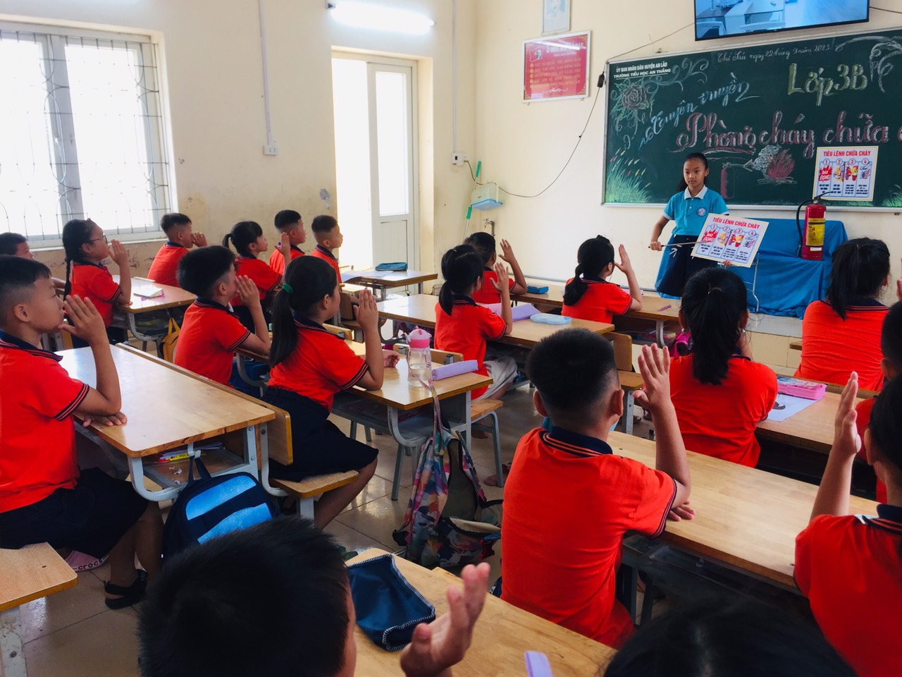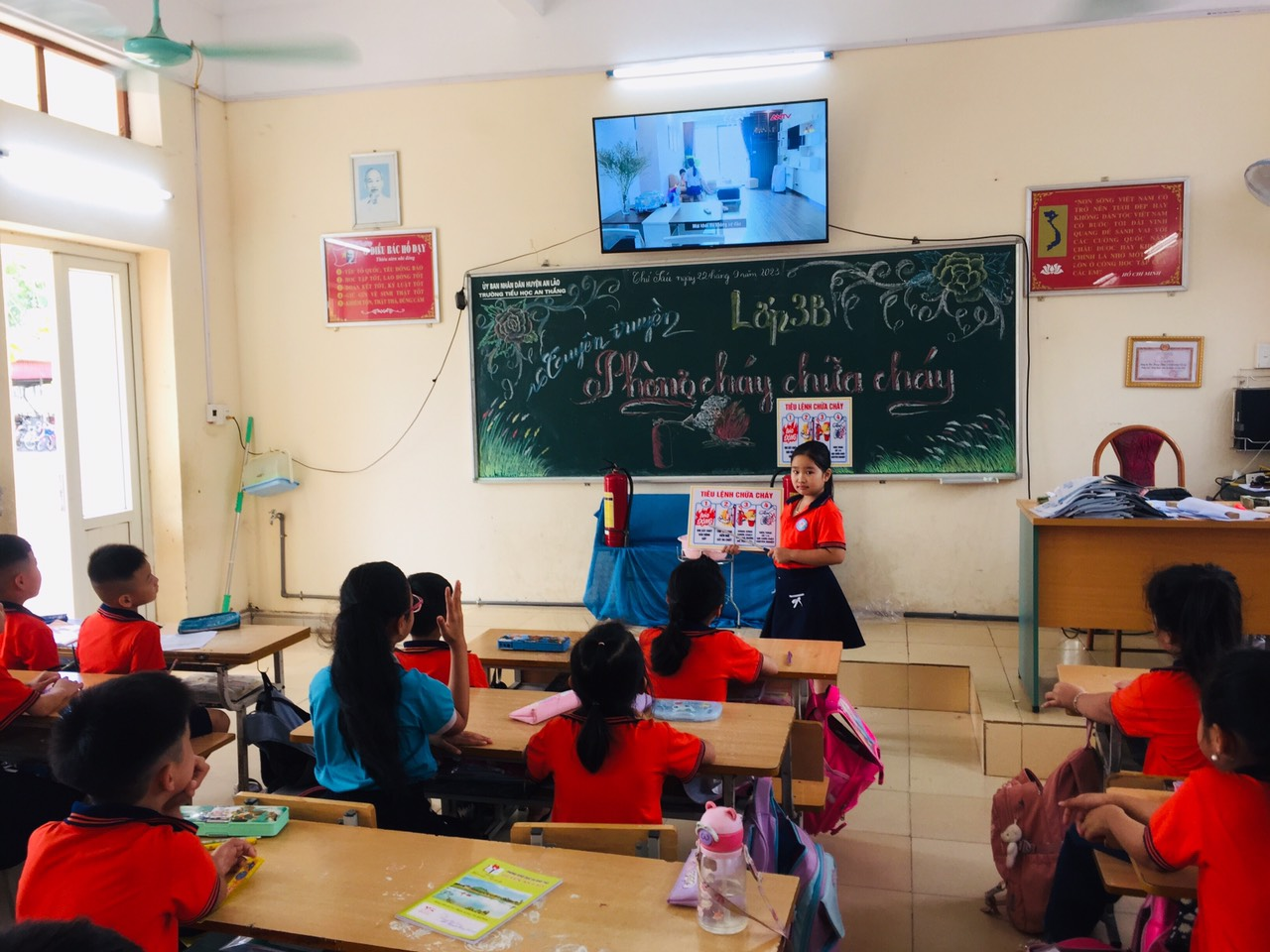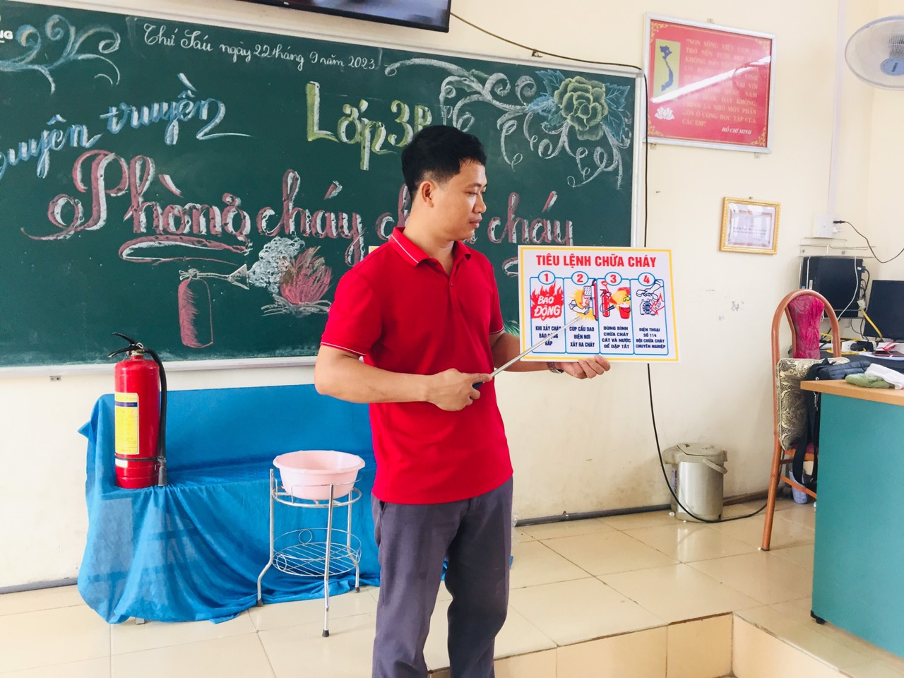 - Vì vậy, để đảm bảo an toàn PCCC là việc phải được làm thường xuyên, liên tục, đồng đều, rộng khắp. Thầy giáo Bùi Hồng Phúc -giáo viên chủ nhiệm lớp 3B đã tổ chức tuyên truyền đến toàn thể các em học sinh những kiến thức cơ bản để tự cứu mình hoặc người thân trong gia đình khi hỏa hoạn diễn ra.