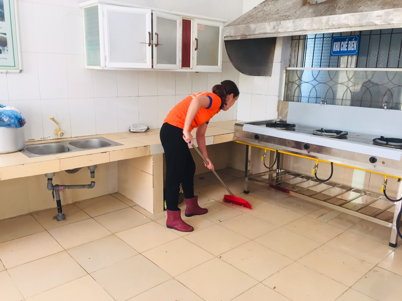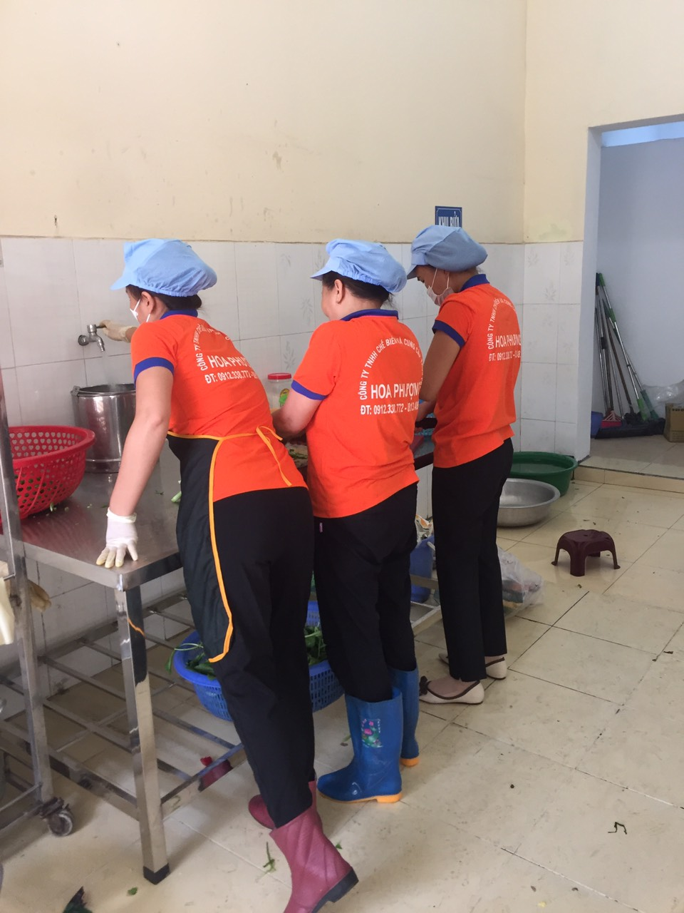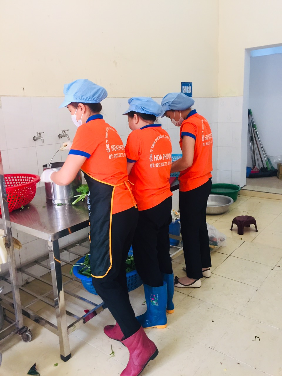 Không chỉ thực phẩm đảm bảo an toàn, đội ngũ nhân viên nhà bếp đã được trang bị đầy đủ đồng phục, găng tay, mũ bảo hộ… để đảm bảo an toàn vệ sinh trong khi chế biến thức ăn. Ngoài ra, toàn bộ nhân viên bếp ăn đều tập huấn kiến thức về vệ sinh an toàn thực phẩm và được khám sức khỏe định kỳ.