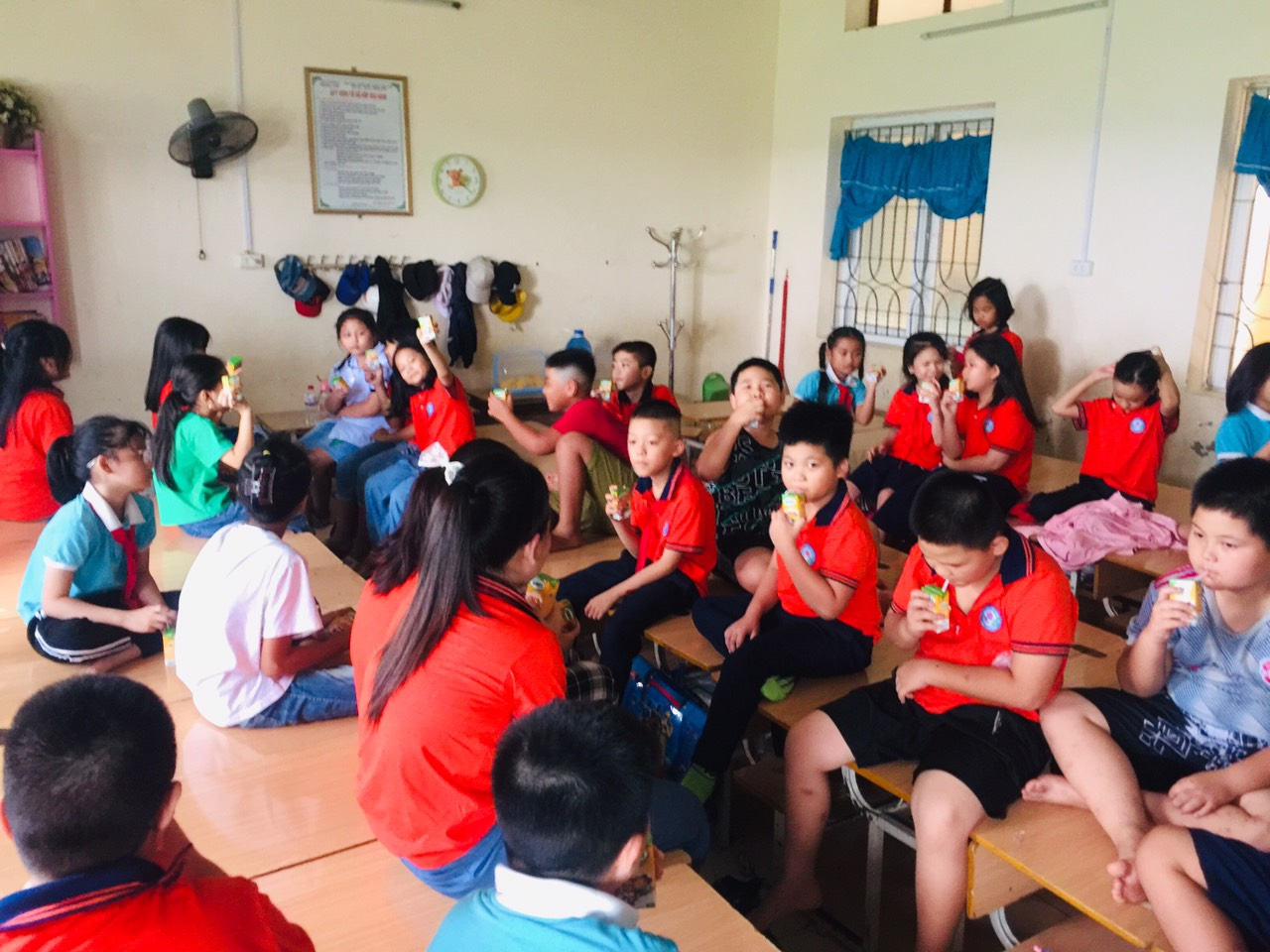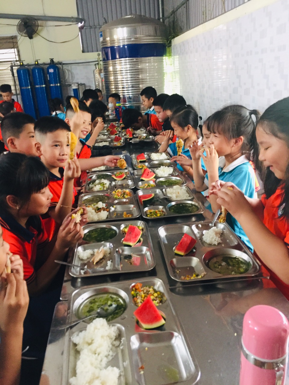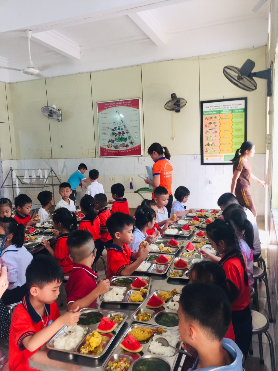 Toàn bộ hơn 140 em học sinh tham gia bữa ăn đầu tiên của năm học mới đều rất hứng khởi và ngon miệng. Nhất là các em khối 1 được thưởng thức bữa ăn đầu tiên ở ngôi trường mới các em đều ăn rất vui vẻ ngon miệng và ngủ rất ngon giấc.