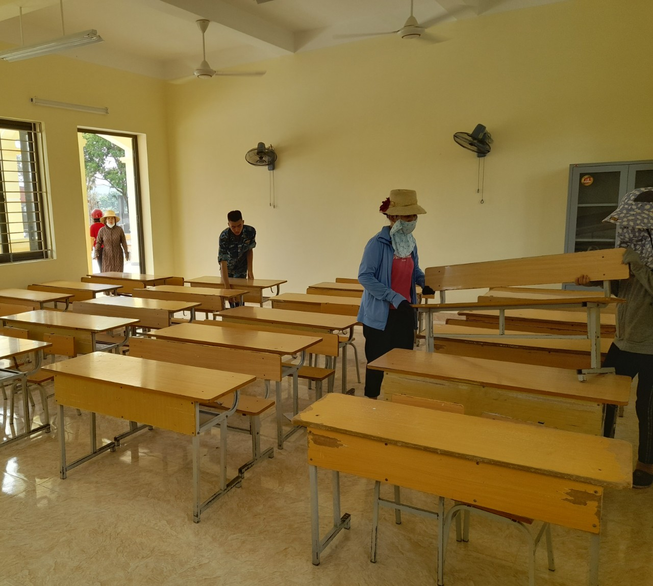 Hôm qua, thứ bảy ngày 12/ 8, nhà trường đã tổ chức cho toàn thể cán bộ, giáo viên và nhân viên lao động, dọn dẹp, kê bàn ghế, lắp đặt thiết bị, đảm bảo môi trường xanh, sạch, đẹp và an toàn.