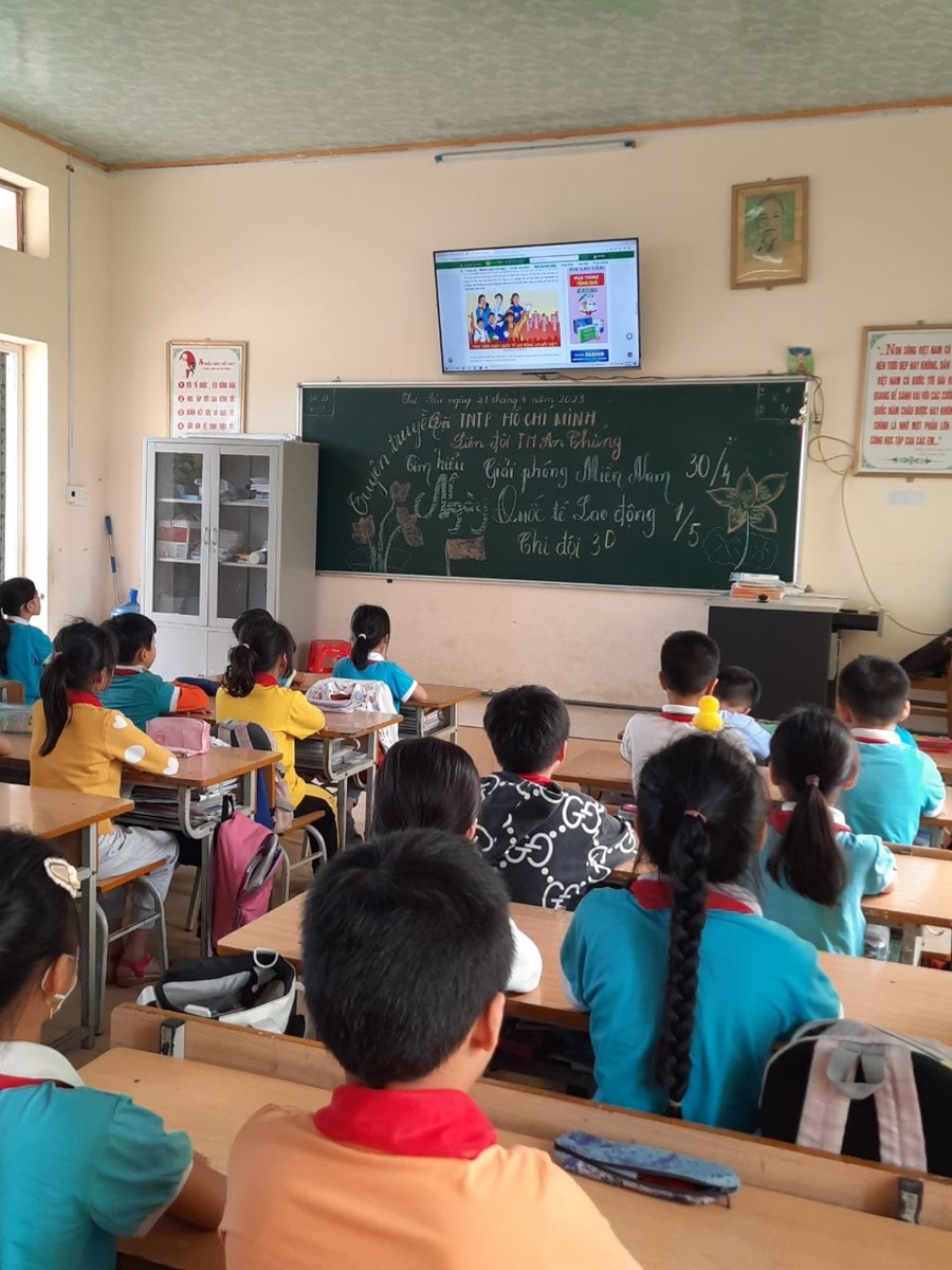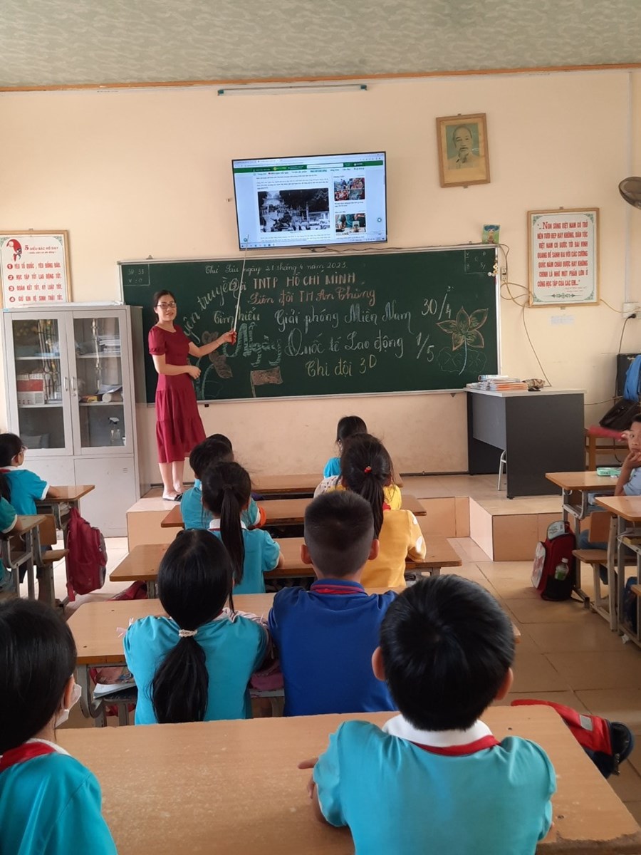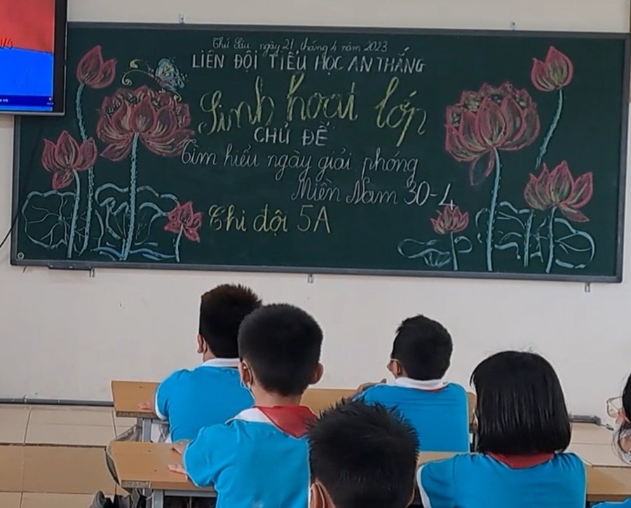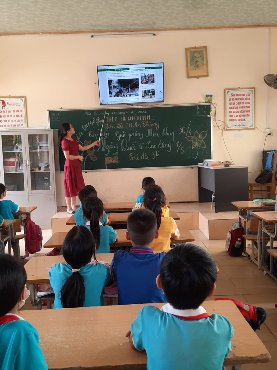 Ngày 26/4/2023 Lớp 5B tổ chức hoạt động tuyên truyền kỷ niệm 48 năm ngày Giải phóng hoàn toàn miền Nam thống nhất đất nước (30/4/1975-30/4/2023) và Quốc tế Lao động 01/5. Tại buổi tuyên truyền các bạn học sinh được nghe về lịch sử, vai trò, ý nghĩa của ngày giải phóng miền nam 30/4, những chiến công oanh liệt của sự nghiệp chống mỹ cứu nước, giải phóng miền nam, thống nhất đất nước và lịch sử ngày quốc tế lao động 01/5. Thông qua hoạt động nhằm giúp ĐVTN, học sinh hiểu được ý nghĩa lịch sử của ngày 30/4, nhằm giáo dục truyền thống cách mạng, lòng yêu nước, niềm tự hào dân tộc, trách nhiệm của tuổi trẻ trong công cuộc xây dựng và bảo vệ Tổ quốc hiện nay.