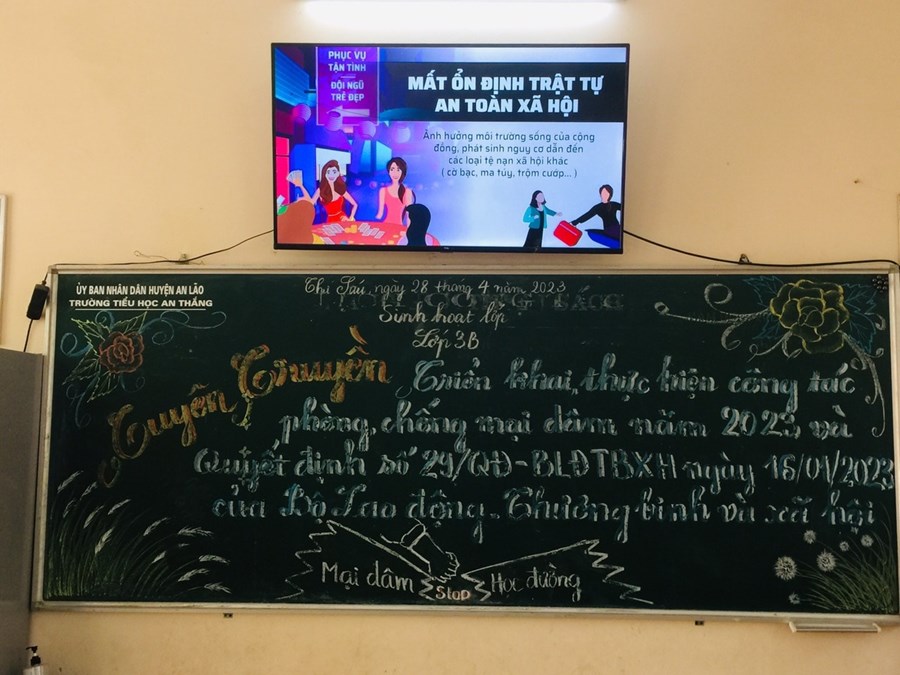 - Để ngăn ngừa tình trạng này cũng như thực hiện Quyết định số 29/QĐ-BL ĐTBXH ngày 16/01/2023 của Bộ Lao động - Thương binh và xã hội đã đẩy mạnh công tác tuyên truyền phòng, chống tệ nạn mại dâm trong học đường.