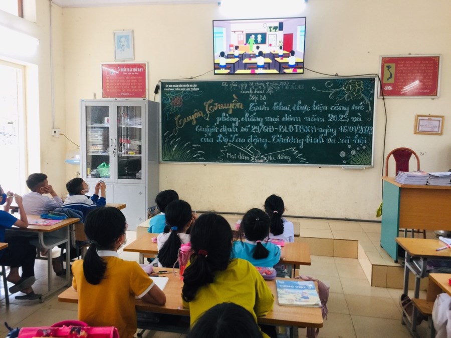 Trong giờ HĐTN ngày 28/04/2023 lớp 3B và lớp 2B trường TH An Thắng tổ chức tuyên truyền sâu rộng tới toàn thể học sinh:
