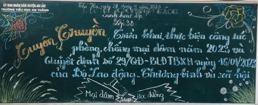 Căn cứ vào nội dung trên đây, trường Tiểu học An Thắng đã xây dựng nội dung tuyên truyền, giáo dục phòng, chống mại dâm cụ thể cho phù hợp với lớp học của mình.